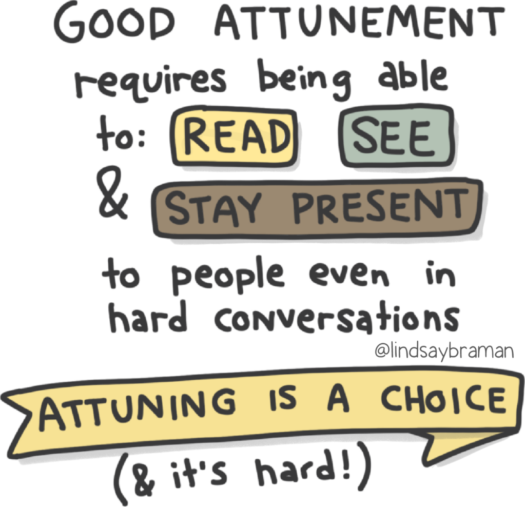 Attunement requires a high degree of emotional intelligence and self-awareness, as well as a willingness to prioritize your partner's needs and feelings over your own. When two partners are attuned to each other, they are able to create a deep sense of connection and intimacy that can weather the challenges of life and strengthen their bond over time.